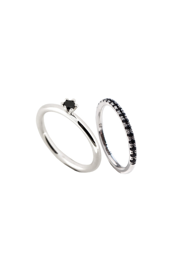 Ringarna är silverringar med briljantslipade svarta diamanter.