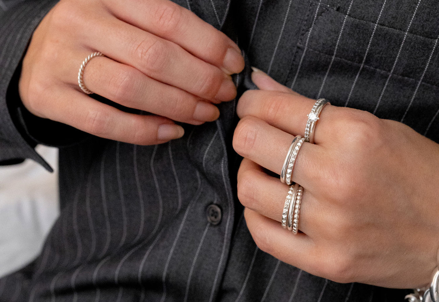 I videon har vi även kombinerat silverringar med våra vackra diamantringar i silver - en lyxig uppdatering som är tidlös och användbar.