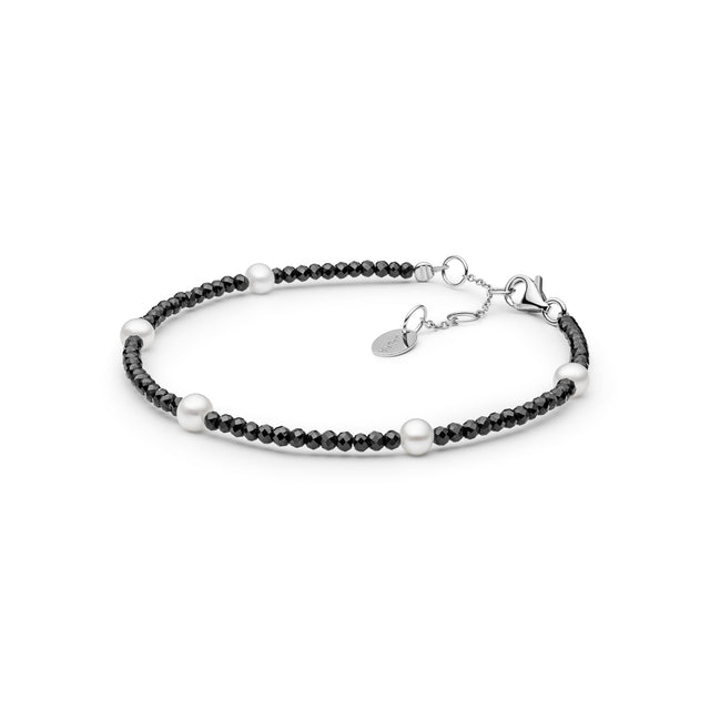 Unser Perlenschmuck besteht aus Süßwasser-Zuchtperlen mit Ketten und Verschlüssen aus rhodiniertem Silber. Perlen sind Naturmaterialien und empfindlicher als Silber – sie können durch Chemikalien, Parfüm und starke Hitze angegriffen werden.