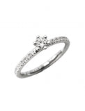 Julie är en vacker och detaljrik diamantring med centersten och sidostenar.