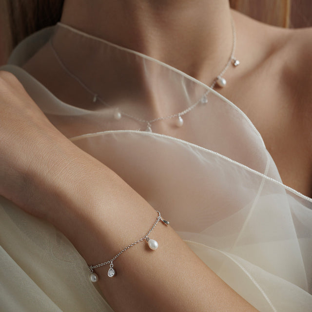 Våra pärlsmycken består av odlade sötvattenspärlor med kedjor och lås i 925 silver.